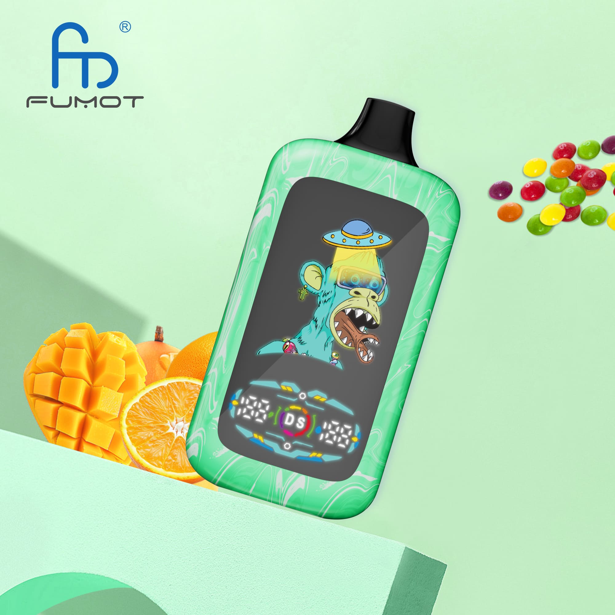 FUMOT Digital Monkey er en kompakt og moderne vape med digitalt display, der gør det nemt at holde styr på batteri og væskeniveau. Den leverer en jævn damp og fyldig smag i hver puff takket være avanceret coil-teknologi. Perfekt til hverdagsbrug med et stilrent og brugervenligt design. Klar til brug og nem at have med overalt.