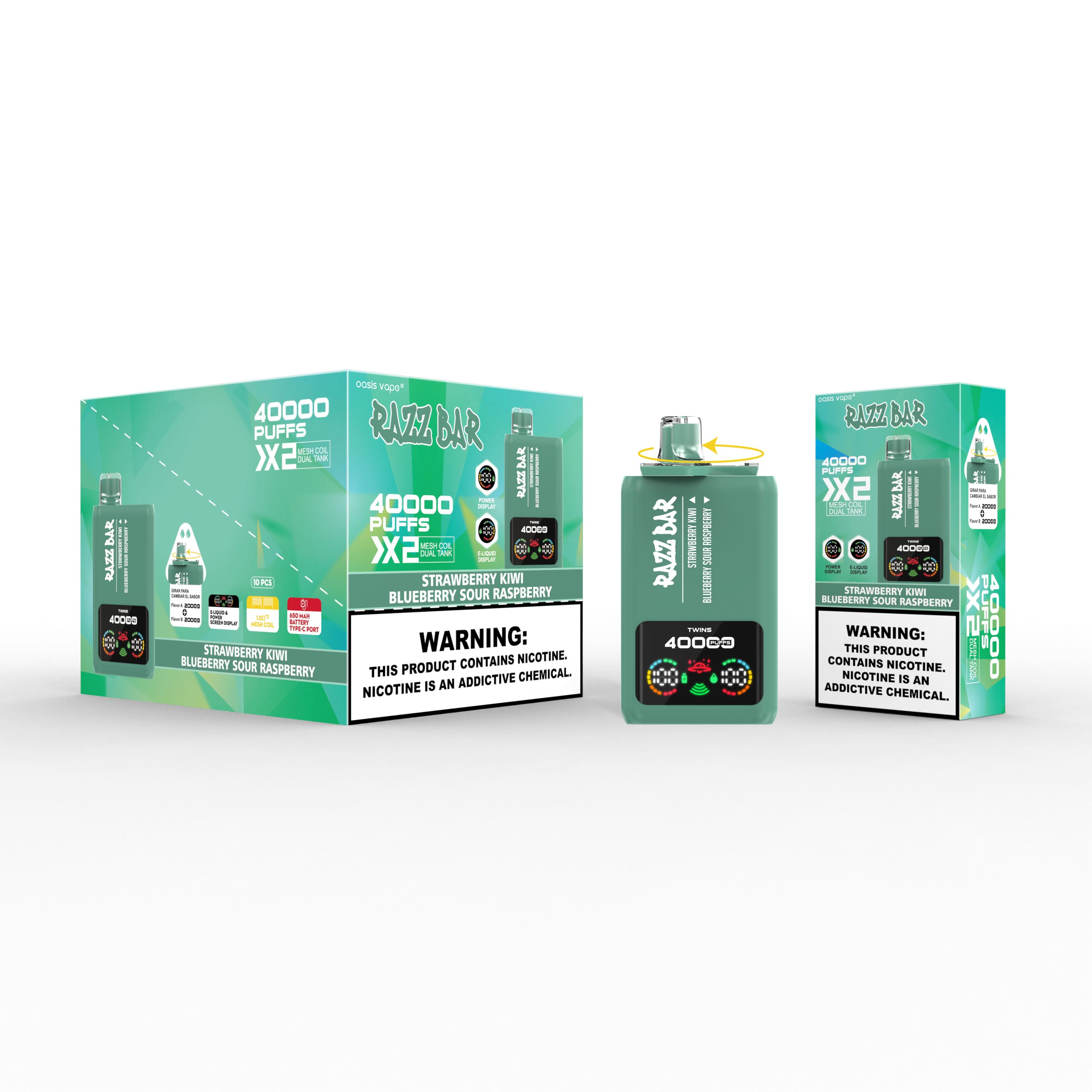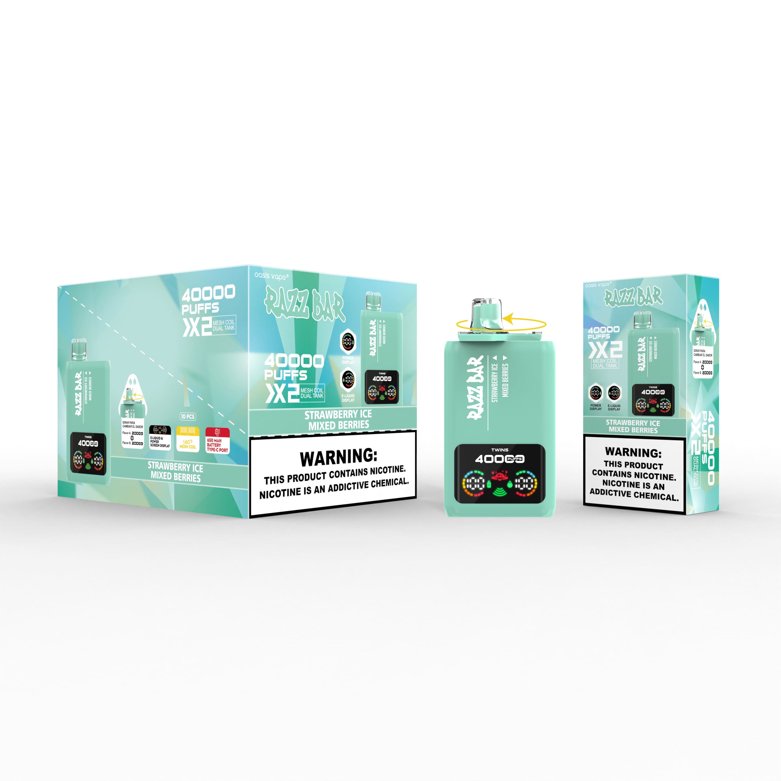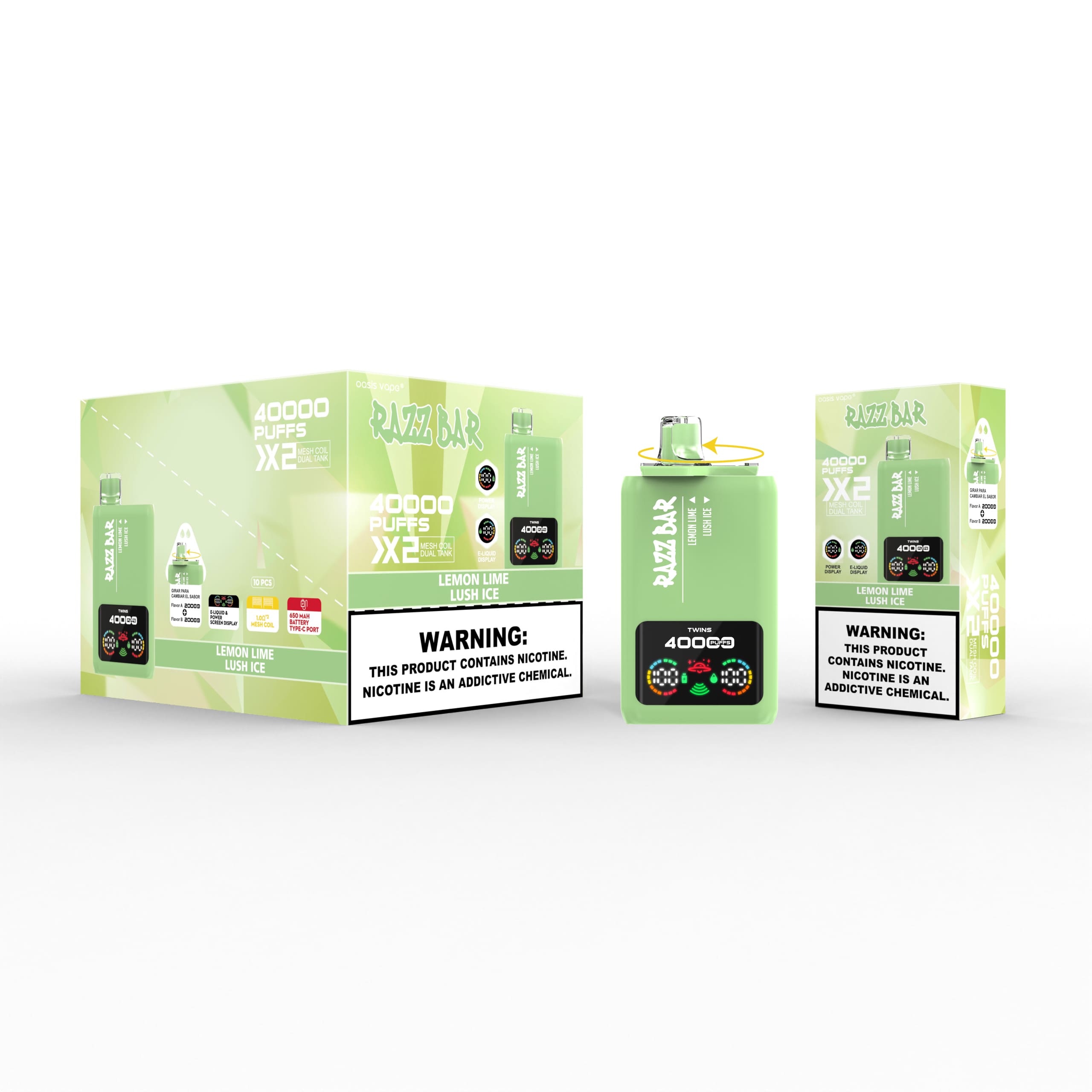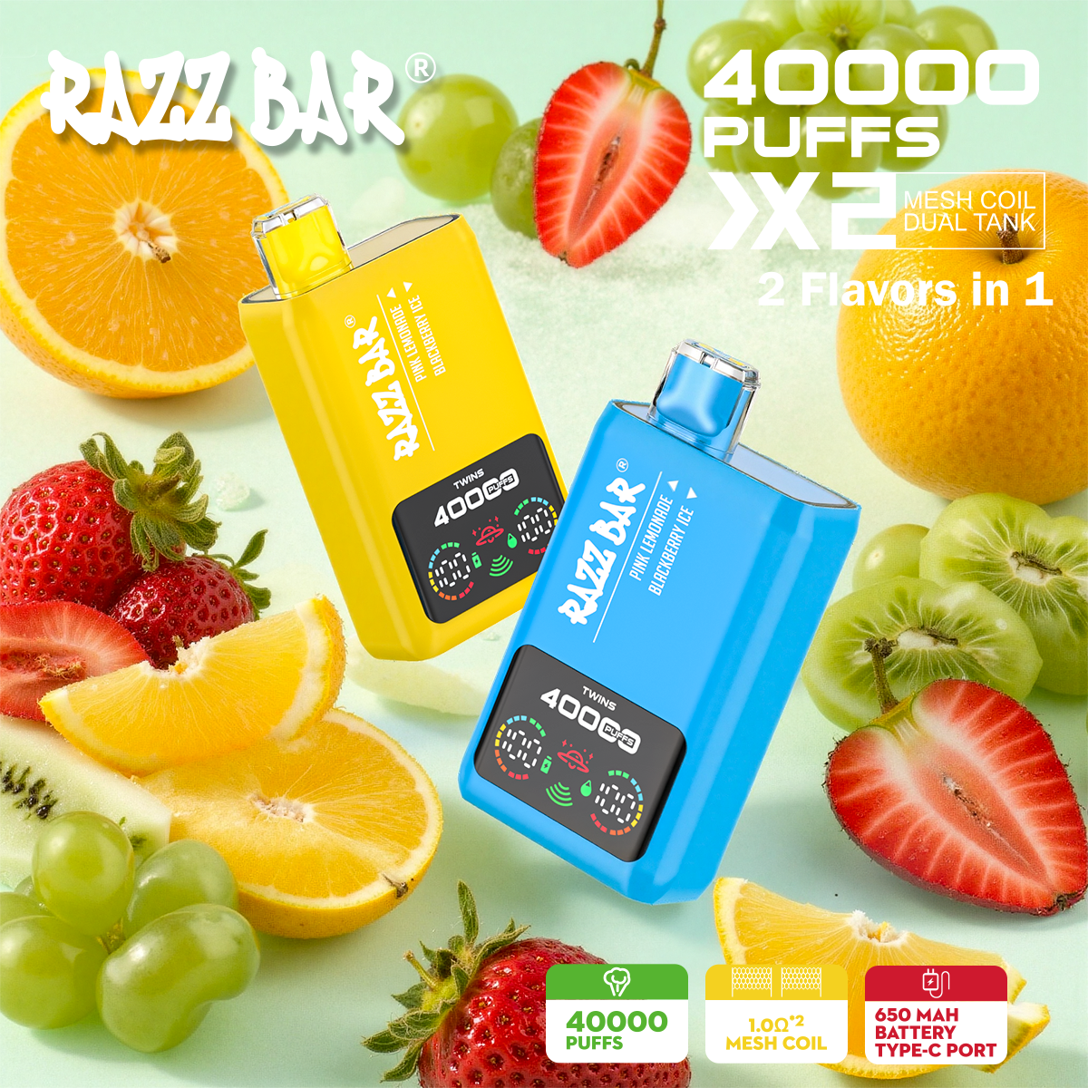 Razz Bar 40000 Dual Flavor er en high-capacity engangs-vape udviklet til maksimal fleksibilitet og lang levetid. Enheden leverer op til 40.000 sug og er udstyret med dual flavor-funktion, som gør det muligt at skifte mellem to smagsvarianter i samme enhed. Den avancerede mesh-coil teknologi sikrer effektiv forstøvning og stabil smagsydelse, selv ved høj belastning. Et kraftigt genopladeligt batteri med USB-C understøtter den store e-væskekapacitet og sikrer pålidelig drift gennem hele brugstiden.